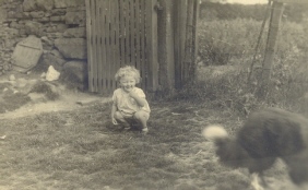At Wall Farm. I am about 20 months in this picture. It was taken by a friend of Uncle Willie's from Armstrong College, where Willie had studied agriculture. Armstrong College is now part of the University of Newcastle.