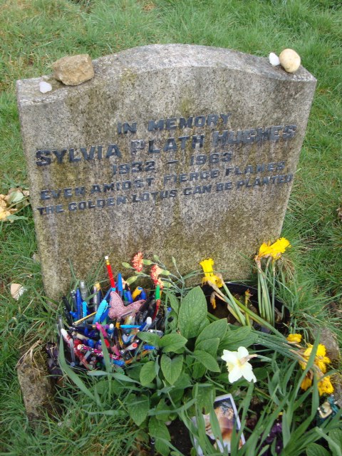 Sylvia was buried in Heptonstall, West Yorkshire in the graveyard extension of St. Thomas's Church. I visited her grave in 2011 with my two daughters, both born in North Tawton. Lots of spring bulbs had been planted and there was a pot of pencils and pens. Rona rummaged in her bag and found another pen to add to the collection. ![]() Ted had chosen her epitaph from the Bhagavad-Gita. ![]() Even amidst fierce flames the golden lotus can be planted. |