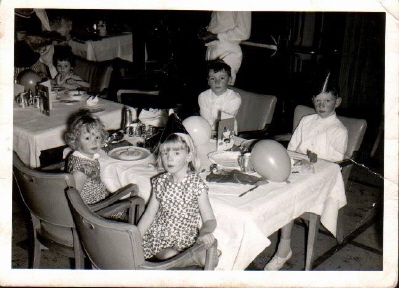 ![]() Gibraltar: the Rock. There was no choice though about meals. They had to be eaten, separately from us, with the other children. ![]() Here they are at a so-called Iberia children's party. The little girl on the next table seems to be entirely on her own. |