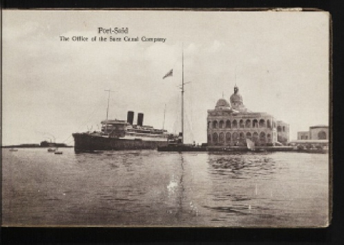 PORT-SAID, EGYPT. 4 February. From Naples we crossed the Mediterranean Sea to Port-said. ![]() There was a lot of discussion about whether it was safe to go along the Suez Canal. In the end we did go, but we went at night. This meant that we missed seeing the interesting sights along the canal. We were the last ship to go through at that time. Aidan collected stamps and he remembers Port-Said as the place where we bought him an interesting Egyptian stamp. He no longer has the collection, but he says it looked like this, only it was purple. Bride says she remembers Aidan's big purple stamp, because he was so pleased with it. ![]() |