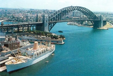 Sydney, New South Wales. 28 February. ![]() There was great excitement among the children when we entered Sydney harbour. From a distance it looked as if the mast was going to hit the bridge. Bride remembers it well. She says we were almost at the bridge before it was clear that there was space for the Iberia to go under it. A great cheer went up from the children. We loved Sydney too. It was compensation for having to leave Perth. We were there for several months.We had to be warned not to get sunburnt. Some of us had very fair skins. A house had been reserved for us at 52 Wrights Road, Drummoyne. It was a beautiful district with views of the Bridge and the half completed Opera House. We were entertained by Harry and Madge Eddy. ![]() Harry and Gilbert came from a similar social class: Harry was the son of a blacksmith, Gilbert's father was a commercial traveller. They both excelled academically at university. Harry, however, had chanelled his gifts into the wider community. He became an activist working for social change. He had a lifelong interest in adult education and the W.E.A. I think he hoped to find in Gilbert a kindred spirit. He may have had a deciding hand in his appointment. Gilbert though, could never be described as a committed man in that sense. He was quite unpredictable, although his new interest was sociology. Madge had a teaching backgound. She was a natural with children. Our children loved her. Her own children had grown up, but she said it brought back many happy memories of them when they were a similar age to ours. A piece of good news was that our house in Seaton had sold. We lost money on it, but we had to sell and move on. Our next stop was Wagga Wagga, known by the shortened version of Wogga by the locals of that place. |