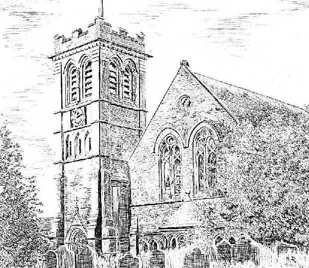 Pen and ink drawing of the church of St. Mary and St. Michael by Stubbs.