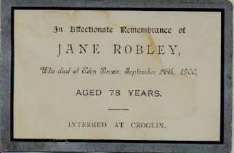 Joseph died on 8th June, 1874 aged 72 years. He died in a diabetic coma. His occupation is given, on his death certificate, as "Landed proprietor and Innkeeper". Jane died at Eden Brows, September 26th, 1900. They were buried together in Croglin Churchyard.