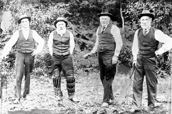 "The first cricket club was started in 1858 by Lyall Scott at Ourimbah, the bat was made from blue gum and ironbark, and the ball from gutta percha pipes. There are only three men now living who were members of the original club, viz., G. Taylor, J. Buscombe and J. Robley; and George Spears is the only man now living that was a member of the opposing team. The first match was between Ourimbah and Gosford in Harrison's Paddock, and Gosford won by three wickets. The next match between the same teams was played at Frog Hollow, Gosford again winning. When Ourimbah met Gosford again on the same ground they defeated Gosford by several wickets. The games were generally played for the dinner. The reason all games were played at Gosford was on account of no suitable ground at Ourimbah. On the evening of each match dancing was indulged in and continued until the small hours of the morning after sunrise. The trip to Ourimbah was made on foot, but players were unaccompanied by their sweethearts, as like the sailor, they had one in every town they visited."