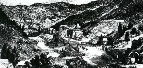 It was a wild and lawless population that followed the miners and the traders followed them. Henry Woods established a store and the township of Woods Point was born in the 1860s the main street of Woods Point 'reeked of revelry and champagne'. Despite prohibition, dance halls and hotels were open seven days a week. Liquor was smuggled in a wide variety of ways including inside saddlery and as a substitute for the padding under women's dresses. Wealth led to reckless extravagance, burning pound notes, skittles using bottles of wine and 'all the mad brained devices for ruining the working man and enriching the sharper'. Gradually the tracks improved and bullock wagons could traverse the route. However the track was rough. A carrier wrote: - 'when drays started, the drays used to lean over on the hillside till, if I had puffed my breath, it would have upset'. Teamsters had to drag large logs behind the wagons to act as brakes and some gullies had steps cut to give a horse a footing.’